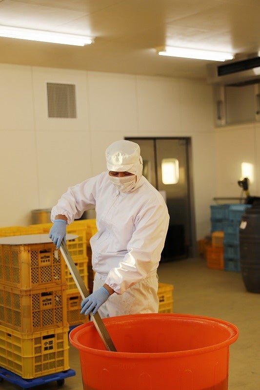 地下の貯蔵庫で新漬けオリーブを作る2代目園主