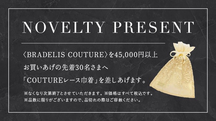 期間中、¥45,000(税込)以上お買い上げのお客様に「COUTUREレース巾着」をプレゼント