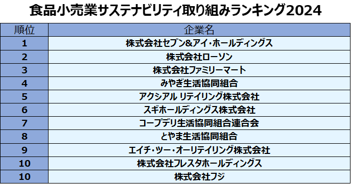 「食品小売業のサステナビリティ取り組みランキング2024」発表!上位3社は7&i、ローソン、ファミマ