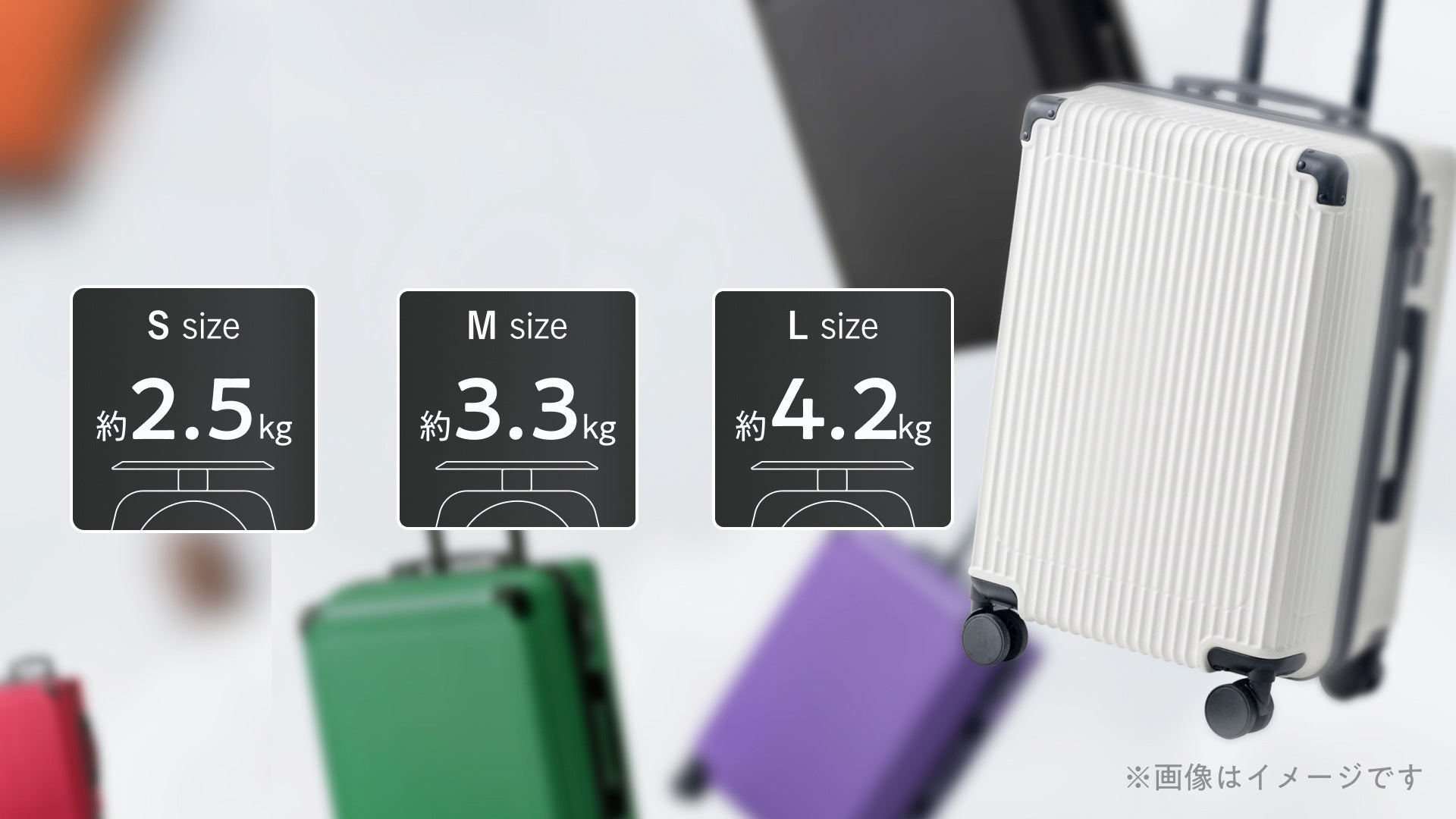 Sサイズ約2.5kg、Mサイズ約3.3kg、Lサイズ約4.2kgとすべてのサイズで業界最軽量クラスを実現しました。軽量・軽快で移動もラクラク。