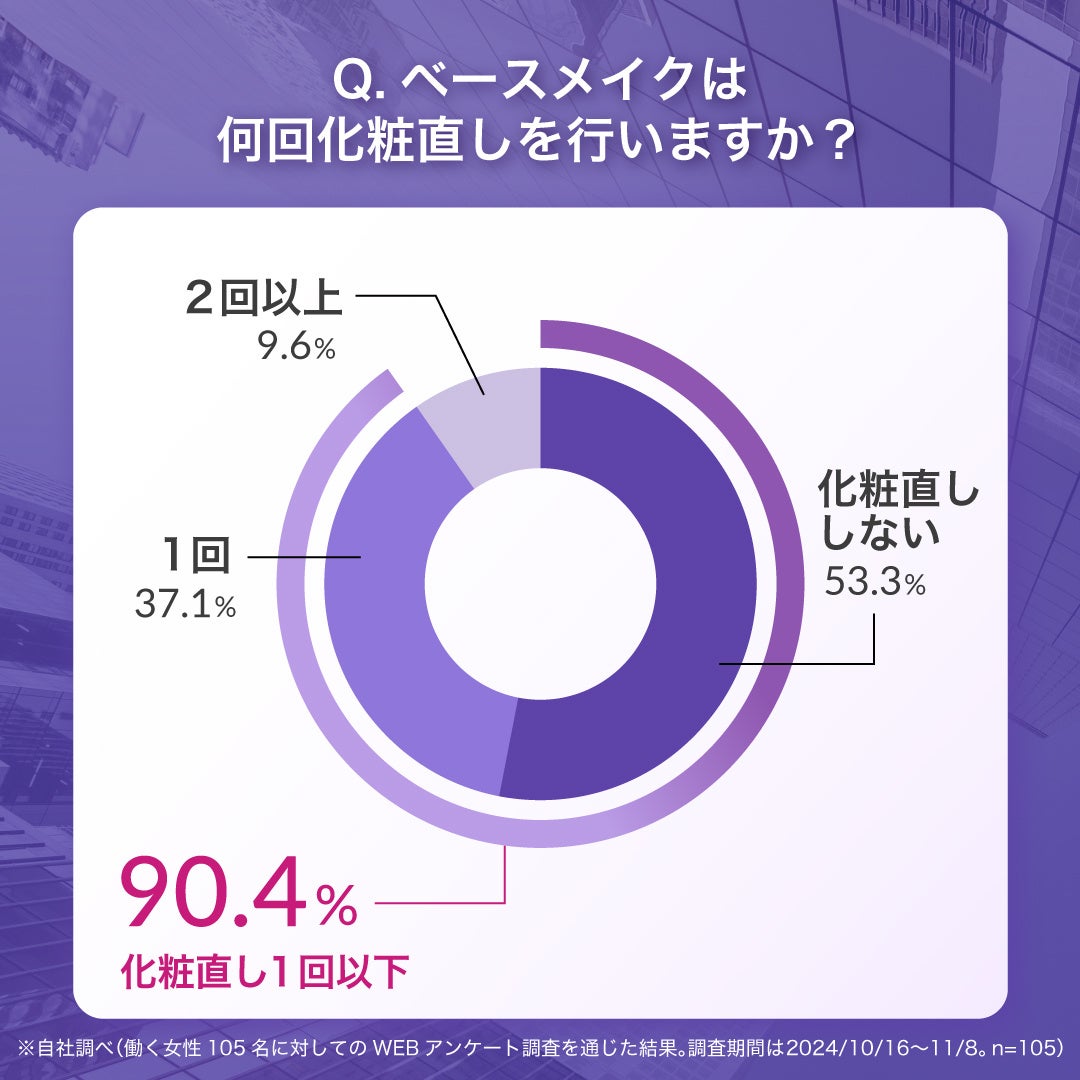 メイベリン ニューヨークは、「SPステイ クリームパクト ファンデーション」の発売にあたり、日本の働く女性105名(20代~40代)を対象に、2024年10月16日~11月8日の期間、インターネット上のアンケートによってファンデーションに関する意識調査を実施しました。