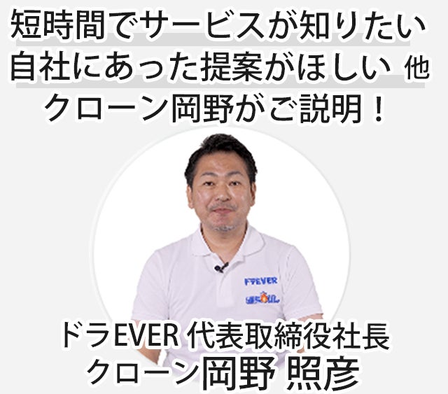 より簡単にドラEVERの求人メディアサービスを知っていただくため、代表取締役 社長 岡野AIがサービスのご説明、御社に合ったサービスの提案をいたします。