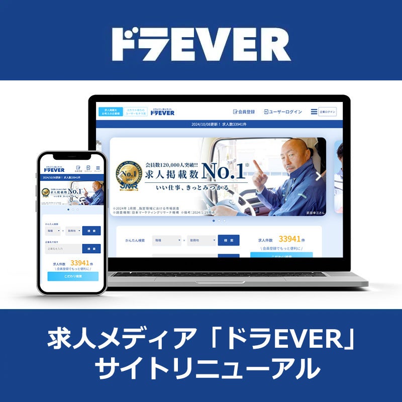 株式会社ドラEVER(本社:東京都港区 代表取締役:岡野照彦)は当社が提供する求人掲載数No.1※のドライバー専門求人サイト「ドラEVER」のメディアサイトをリニューアルしたことをお知らせいたします。