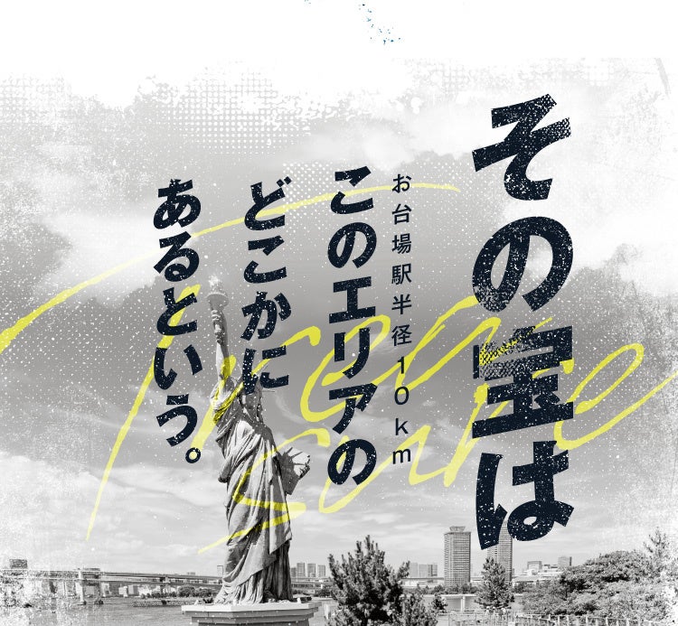タカラッシュがお届けする新しいリアル宝探しイベント。暗号をもとに、ゆりかもめ「台場駅」から半径10kmのエリアに潜む「宝」を写真に撮って報告するとミッションクリアとなります。宝探し未経験の方でも気軽にご参加いただけますので、この機会に宝探し体験、いかがでしょうか?
