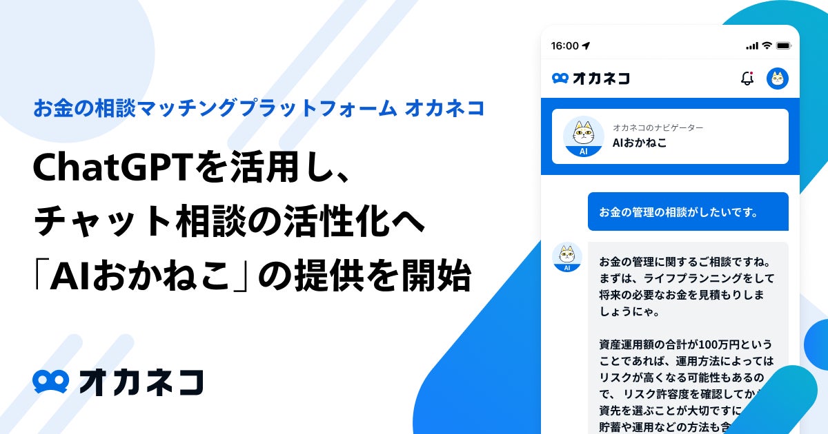 お金の診断・相談サービス『オカネコ』は保有データ×AIで独自の営業モデル開発へ。第一弾はAIチャット機能でお金の相談を活性化