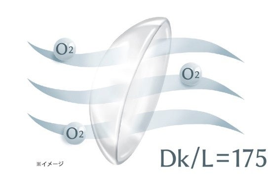 独自の高分子合成技術によって開発されたシリコーンハイドロゲル素材を使用しています。Dk/L値=175*2の高い酸素透過率で、眼の健康に必要な酸素をより多く届けることができます。