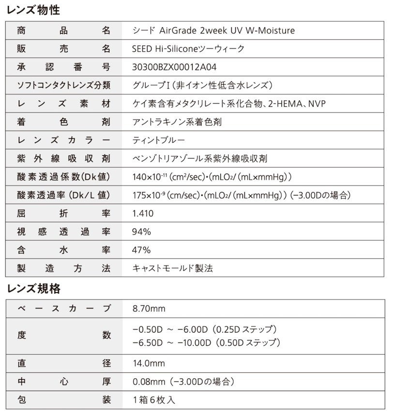 高酸素透過性シリコーンハイドロゲルレンズ「シード AirGrade 2week UV W-Moisture」2024年3月13日(水)新発売