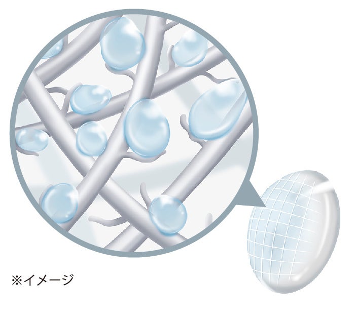 高分子で形成された網目と高分子鎖が水分をキャッチして逃さず、うるおいをキープします。