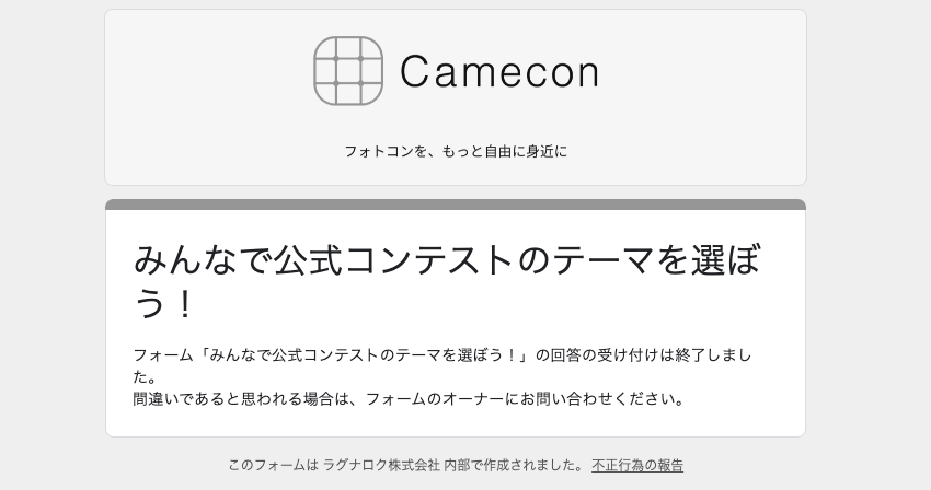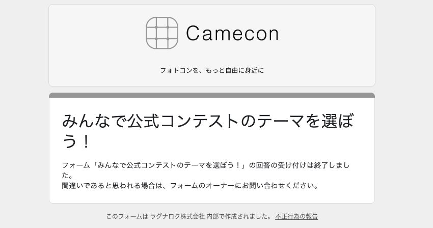 ラグナロク株式会社(本社:東京都渋谷区、代表取締役:西本 誠)は、Camecon(カメコン)にて、公式コンテストテーマのアンケートを実施し、2月の公式コンテストは『スマホ限定コンテスト』をテーマに開催することをお知らせします。