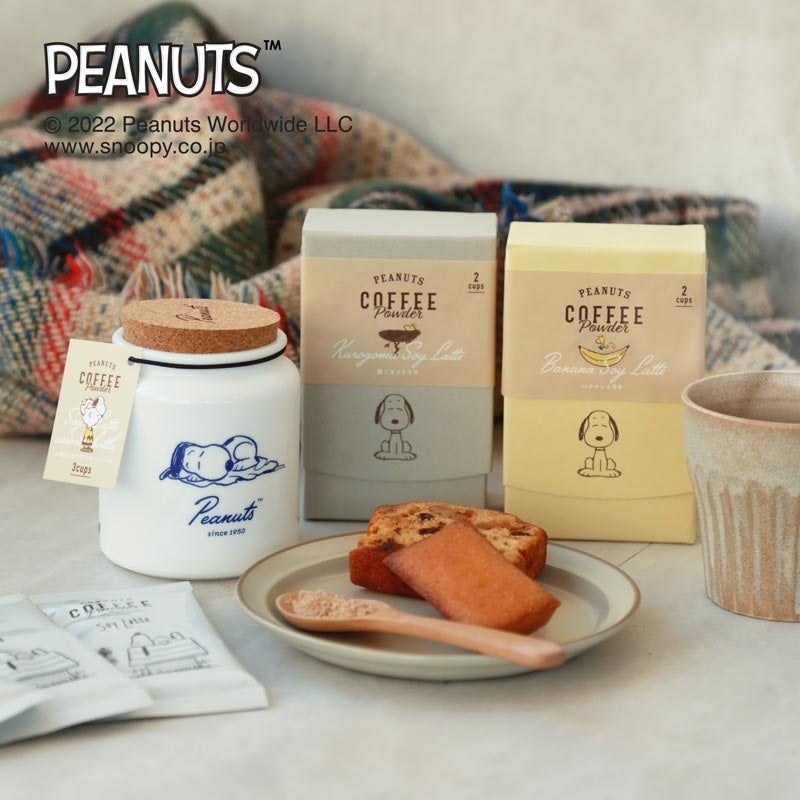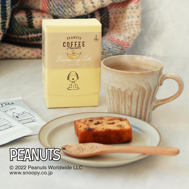 【SNOOPY coffee】バナナソイラテ、黒ごまソイラテが新発売。やさしい味わいとのんびりしたスヌーピーのイラストが、寒い季節に身も心も温めてくれます。