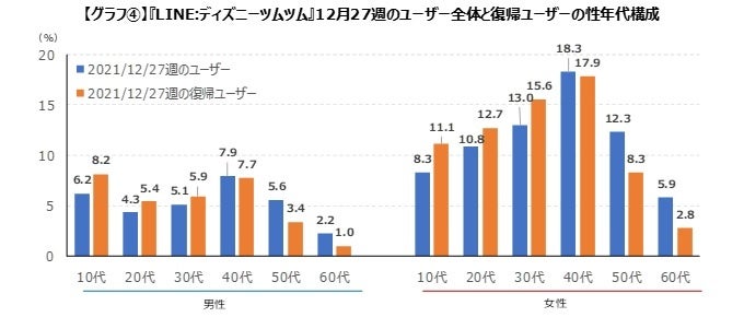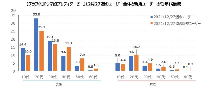 人気シニア俳優の起用と無料ガチャを中心とした施策で、比較的高年齢層の新規ゲームプレイヤーを拡大した『ウマ娘 プリティーダービー』。そして若年層に人気の有名タレントを使ったCMで、休眠ユーザーの復帰を促進した『LINE:ディズニーツムツム』と、対照的な2タイトルでしたが、それぞれの戦略がうまく作用し、両者ともアクティブユーザー増を大きく拡大したことがわかりました。