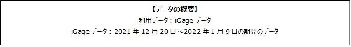 一方、『LINE:ディズニーツムツム』は2022年1月末に控えている8周年を記念した「華麗なる祝宴」というイベントが12月27日より行われました。同時にこの日から、若年層に人気のあるお笑い芸人EXITのりんたろー。と兼近大樹が、ツムツム好きな王子役として登場するテレビCMが1月9日まで放映されていました。CM総合研究所の調べでは、東京キー5局のCM放送回数は212回でした。