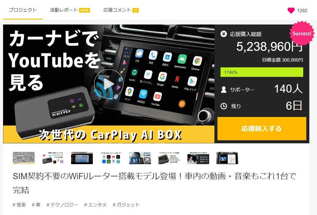 【Makuakeで目標金額1746%達成】カーナビ対応AI BOX『APPCASTⅢ』180日/365日プランが新たに追加!長期でたくさん使いたい方にぴったりな365日500GBプランも登場!