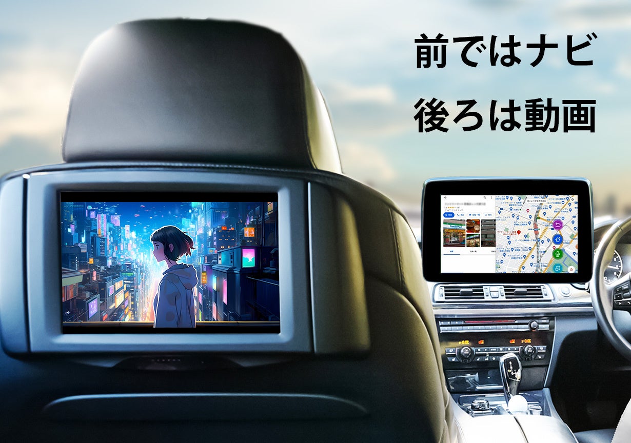 ヘッドレストにモニターを設置してHDMIケーブルで接続すれば、大画面で映像を楽しめます。