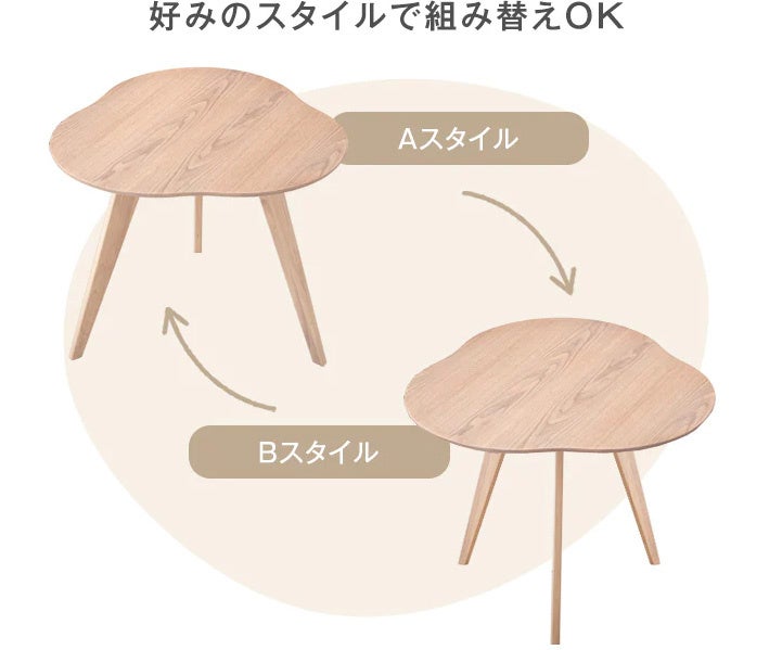 人気の『円形』『楕円形』のテーブルに加えて、個性派かわいい『三つ葉型』『四つ葉型』も