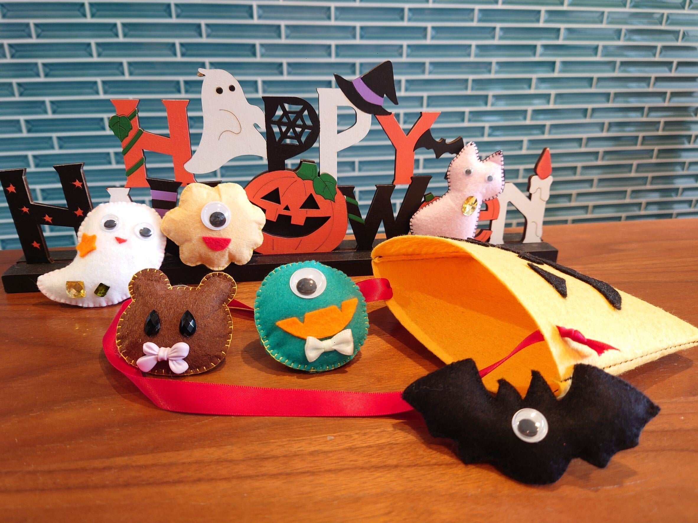 ①ワークショップ(フェルトのおばけバッグ作り(お子様向け)、フェルトのお化けマスコット作り(大人向け))
