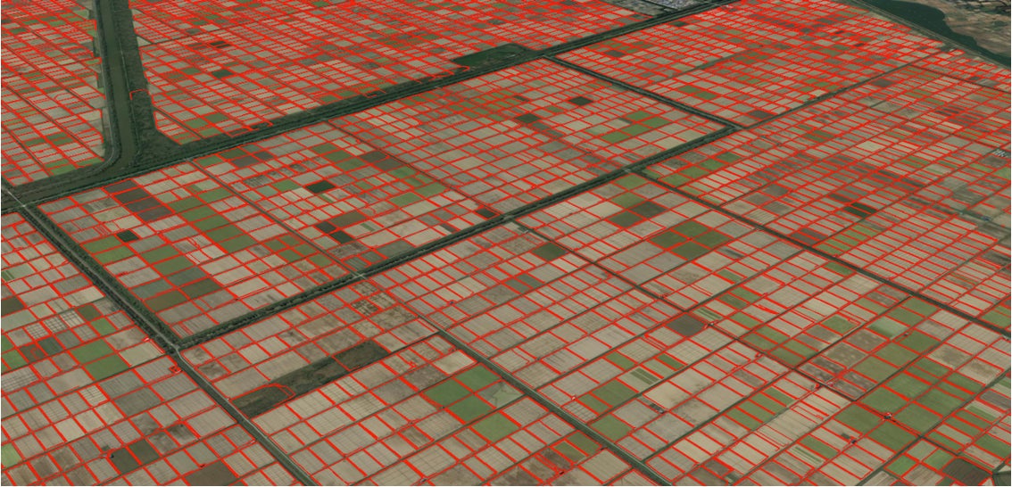 弊社は、50cm級の高解像度の衛星データより、農地を検出、農地区画を自動生成する技術を確立しました。生成された農地区画を「AIポリゴン」と呼んでいます。この技術を用いると国内のみならず、グローバルの農地を瞬時に自動で区画化することができ、1筆ごとに、農地面積も評価可能です。国内での特許権利化を既に終え、海外10ヵ国を超える国々でPCT出願を行なっています。