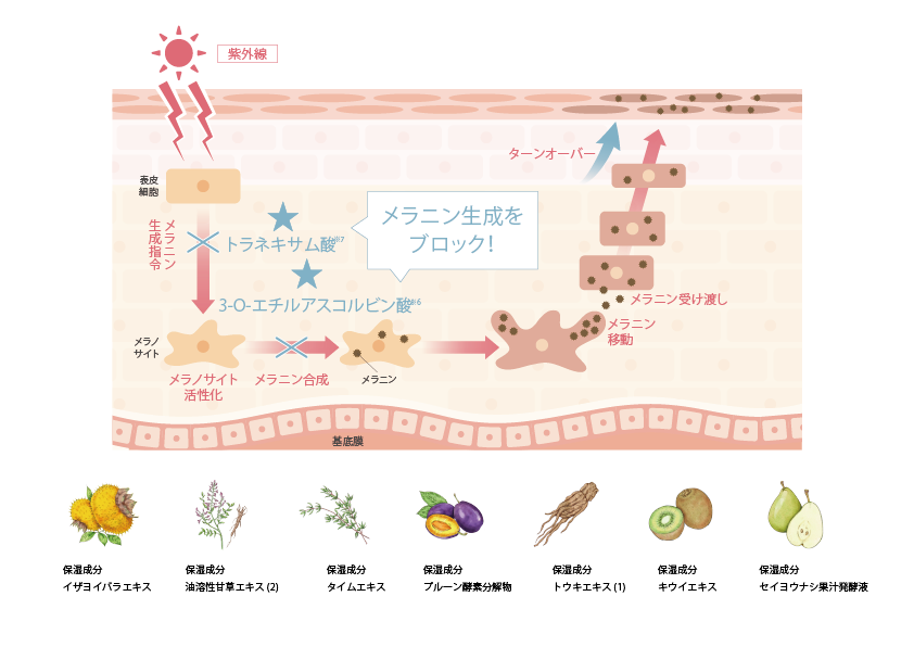 ※1 メラニンの生成を抑え、シミ・そばかすを防ぐ