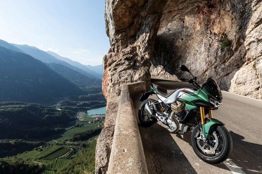 新開発の水冷2気筒エンジンと、充実した電子制御ライディングサポートパッケージの両方において最先端の技術を誇るV100マンデッロは、曲がりくねった道でも本物のロードスターとしてのスポーティで機敏かつ俊敏な特性と、すべてのモト・グッツィの魂に宿るトラベルと新たな発見に対する生まれながらの素質を融合させ、モト・グッツィの歴史に全く新しい章の幕を開きます。