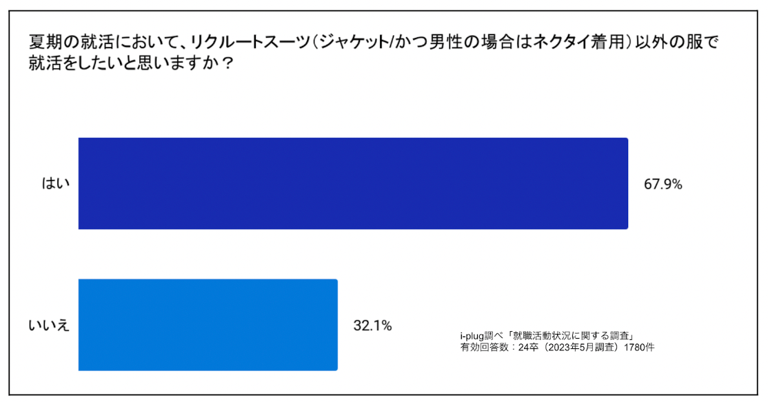 67.9%の学生が夏期はリクルートスーツ以外で就活をしたいと回答しました。