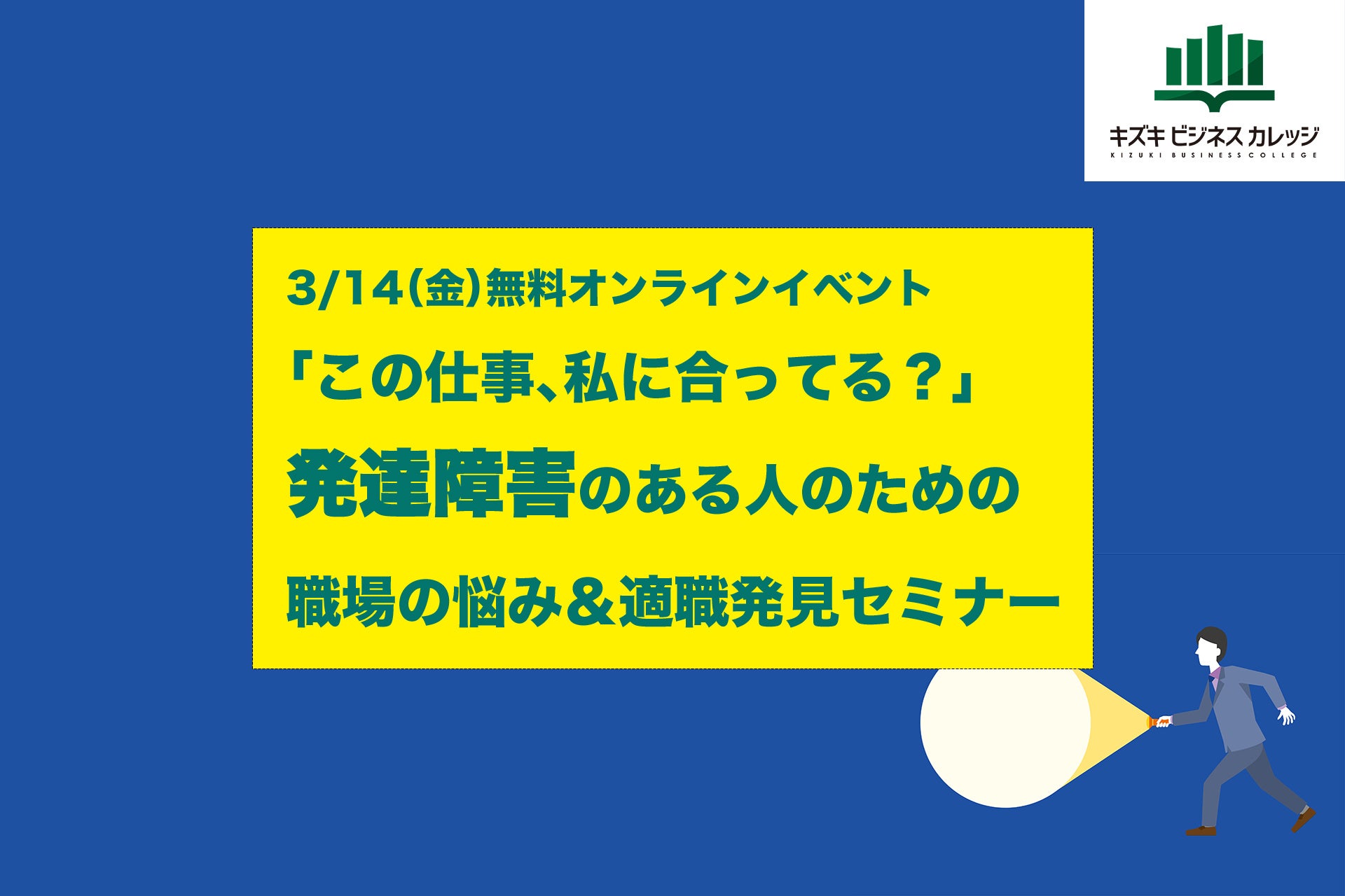 【イベント:発達障害で働き方に悩むあなたへ】「この仕事、私に合ってる?」発達障害のある人のための職場の悩み&適職発見セミナー【3/14無料】