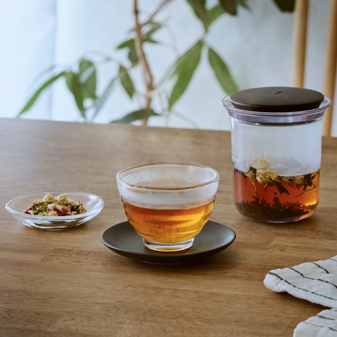 渋み成分が抑えられ、甘味成分を豊富に含んだ玉露紅茶に、香り豊かなジャスミンフラワーとオレンジピール・オレンジフラワー・ローズレッドなどをブレンドし、優しい香りに仕上げました。