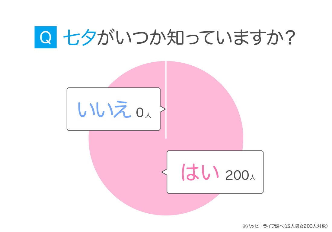成人男女200人に、七夕がいつか知っているか聞いたところ、全員が「はい」と回答しました。