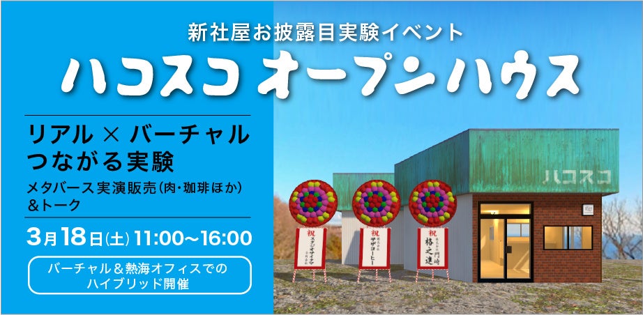 ハコスコ社がリアルとバーチャルがつながるハイブリッド空間で、DX時代のオフィスのあり方を実験し、今後のサービス向上に繋げていく拠点となる新オフィスのお披露目イベントとして、3月18日(土)にリアルとバーチャルで楽しめるイベントを開催します。