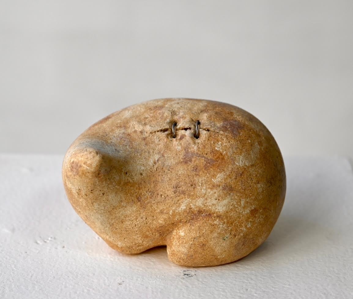 金継ぎではなく、縫い合わせてあるところにニヤリとさせられました。非常に興味深くインスタグラムも拝見しましたが、繋ぎ止めているシリーズの作品がどれも素晴らしく、コレクション欲を掻き立てられました。もっと作品が見たいです。