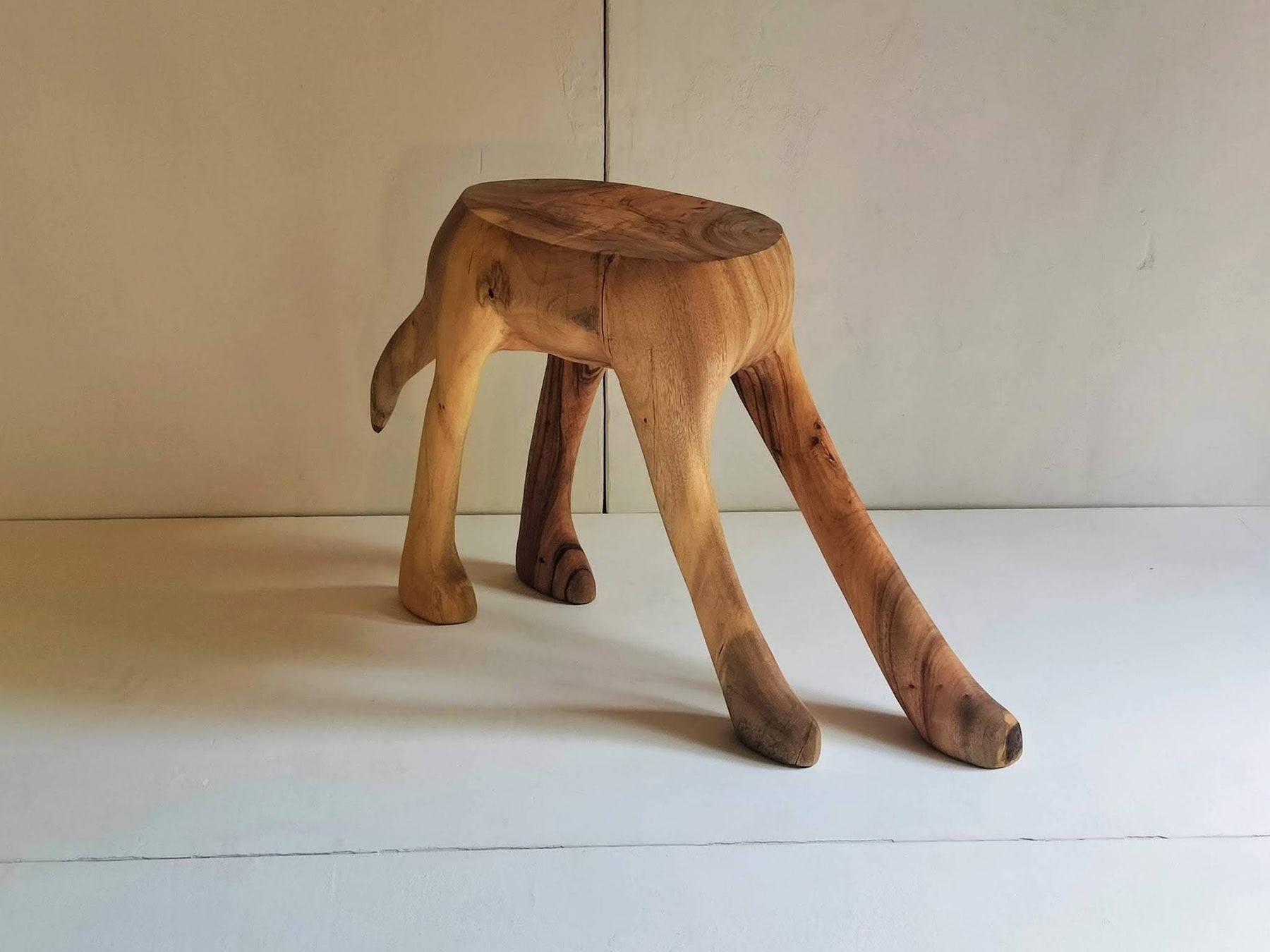木目の自然の曲線と作品そのものの曲線が美しく目を惹きつけました。二股の原木から削り出したとのことで、股の部分の複雑な木目に木の生きようとする力強さと美しさが感じられました。