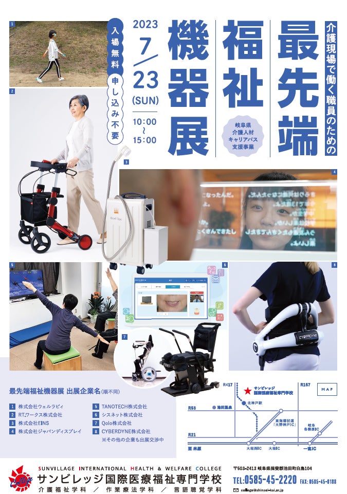 サンビレッジ国際医療福祉専門学校で開催される「介護現場で働く職員のための最先端福祉機器展」にてTANOをご体験できます。