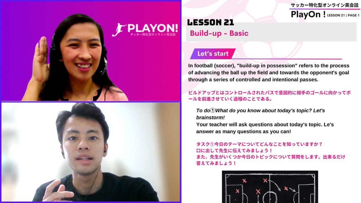 株式会社Rodansnapが運営するサッカー特化型オンライン英会話「PlayOn!」は、日常英会話の中にサッカーの要素を多く取り入れ、サッカーに関する話題が散りばめられた英会話を学ぶことができます。「サッカーで英語を学び、英語でフットボールを学ぶ」のコンセプトのもと、継続の難しかった英会話を大好きなサッカーで学ぶことで最初のハードルを大きく下げることが可能です。