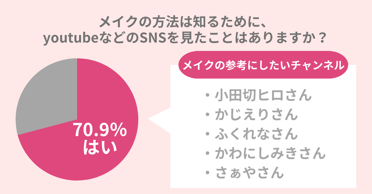 ・70.9%の女性がメイクの方法を知るためにyoutubeなどを見たことがある