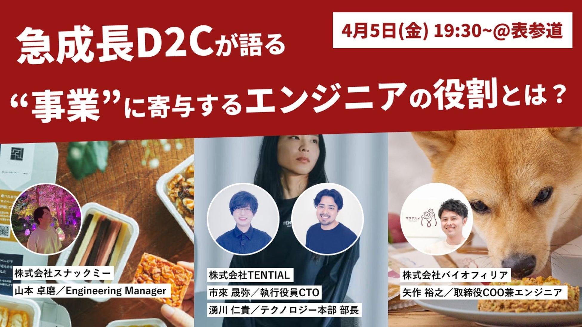 「急成長D2Cが語る、”事業”に寄与するエンジニアの役割とは/TENTIAL×スナックミー×ココグルメ」 |