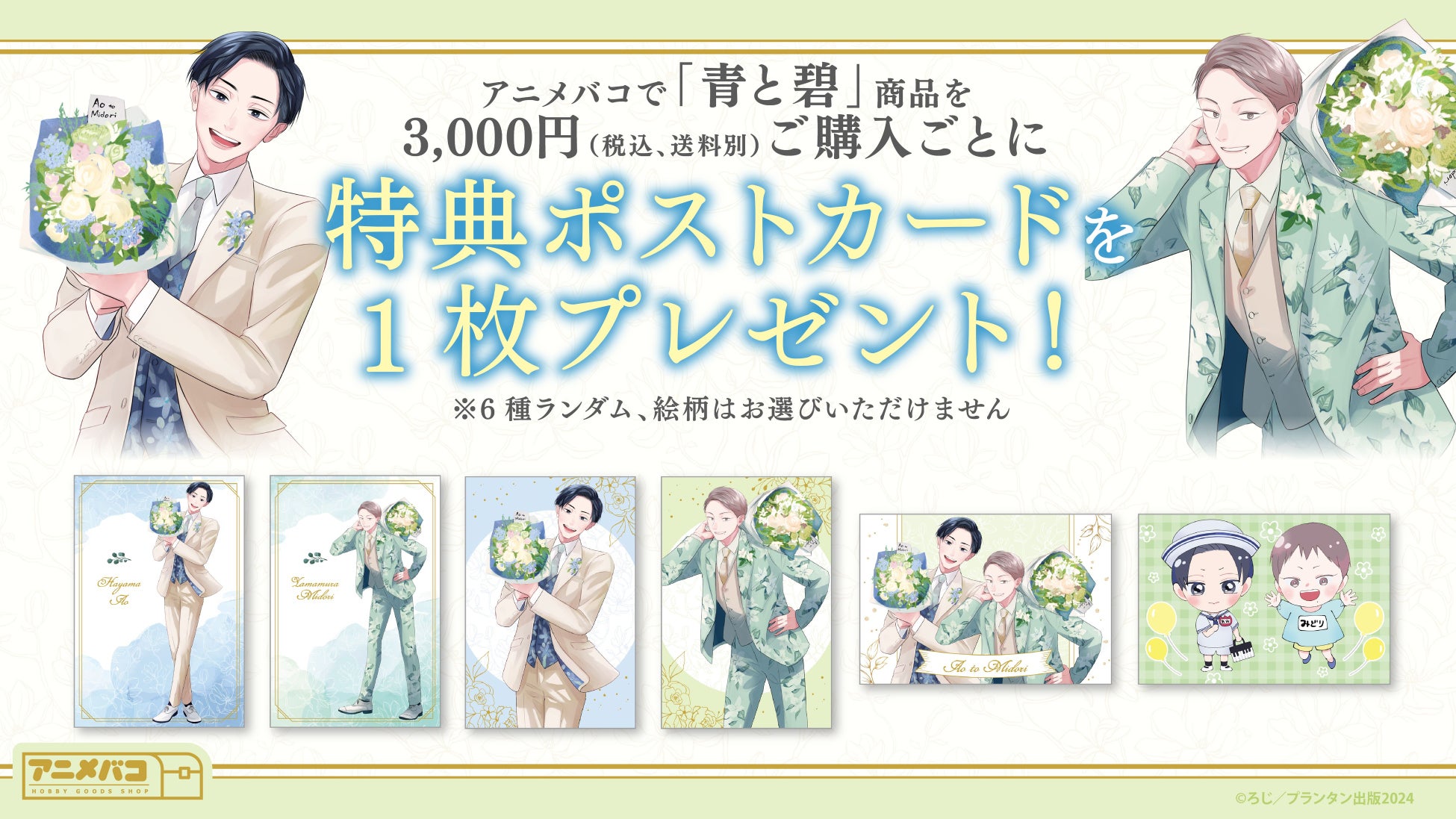 アニメバコでの購入限定で、購入金額3,000円(税込、送料別)ごとに描き下ろし特典ポストカード(全6種)を1枚プレゼントいたします。