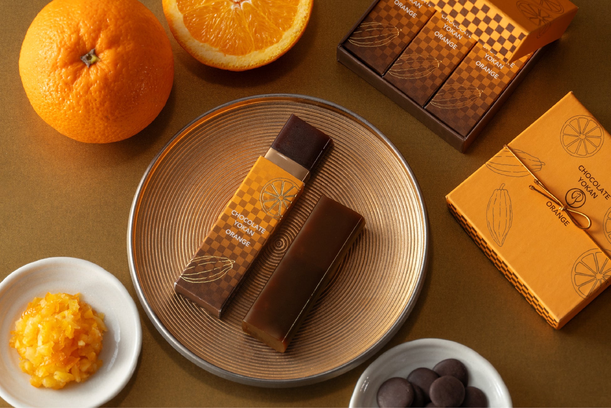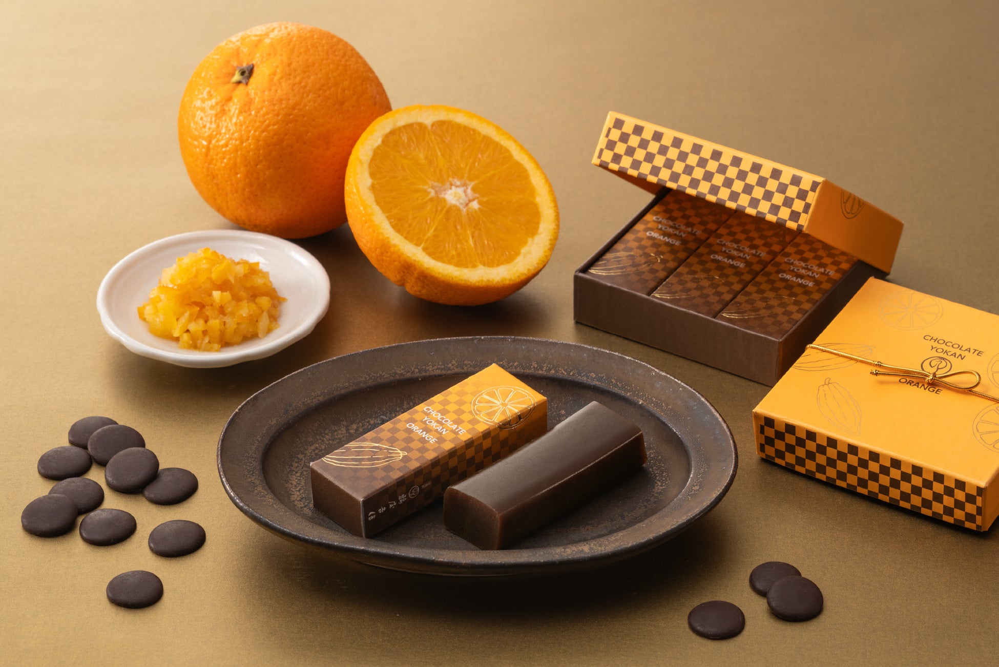 毎年人気のチョコレート羊羹がリニューアル!よりカカオの風味が深く感じられ、オレンジピールとの相性も良いベルギー産クーベルチュールチョコレートを使用した新商品「チョコレート羊羹 オレンジ」が誕生いたしました。