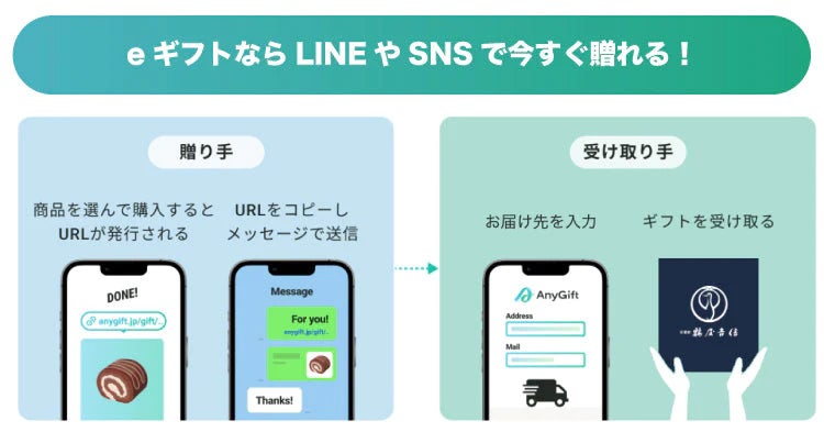 さらに今年は、新登場“ eギフト ”機能に対応した商品もご用意!お相手の住所やお名前がわからなくても、SNSやメールアドレスだけで簡単にギフトを贈れる便利なサービスがご利用いただけます。