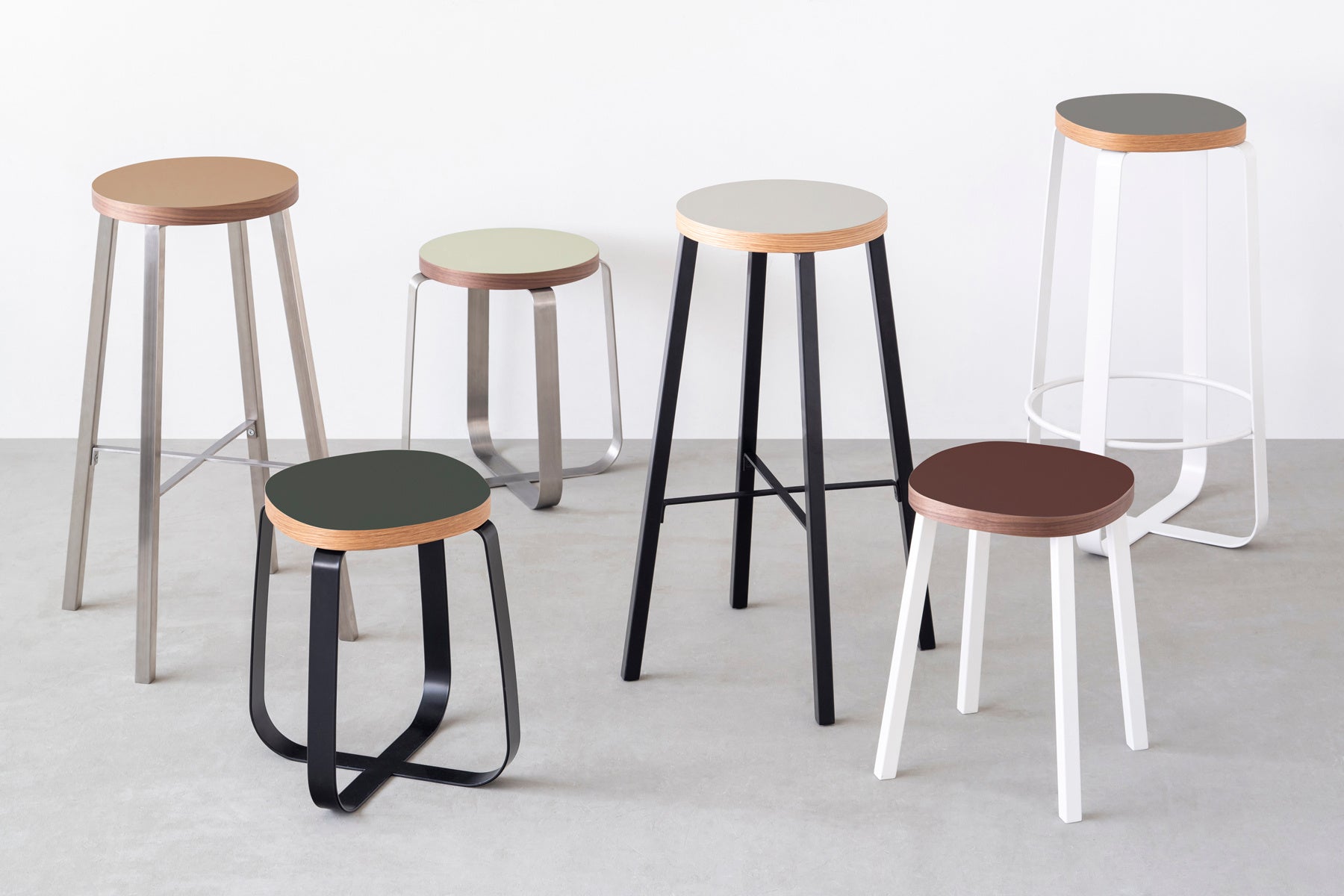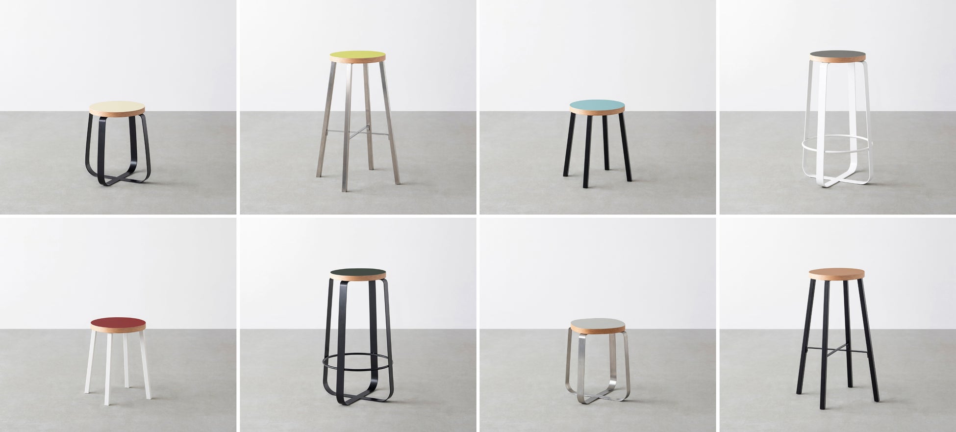 自由度の高い豊富なバリエーションの「THE STOOL」。テーブル天板でも人気なリノリウムが加わったことで、カスタマイズ性はさらに広がり「THE STOOL」シリーズ全体で、合計1,392通りの組み合わせからぴったりの一脚をお選びいただけるようになりました。