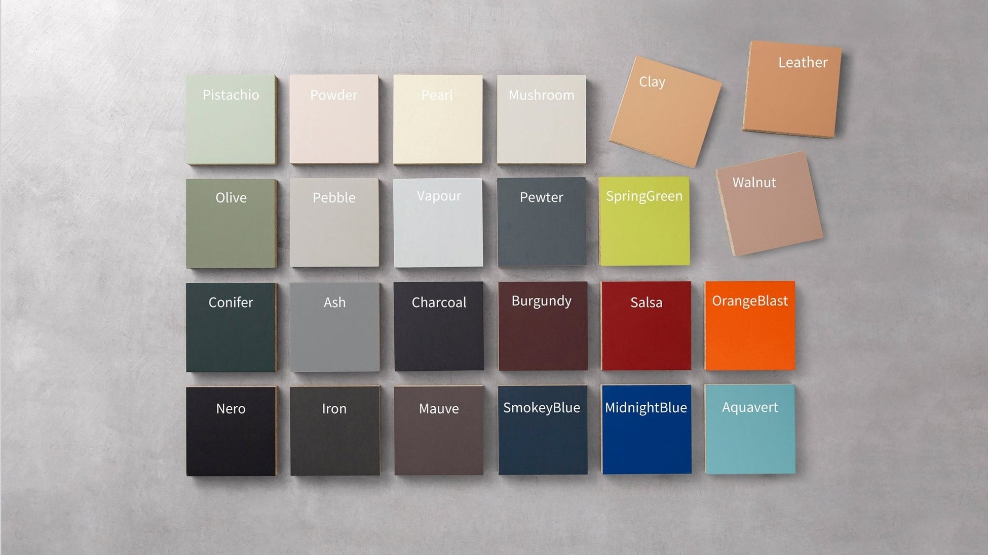 「ヒトと環境にやさしい」自然素材のリノリウム。座面カラーは、国内ではあまり見かけないようなカラーも取り揃えた全24色をご用意。さらに脚のカラーや高さ、デザインまで空間や用途に合わせた組み合わせの選択が可能で、自由度の高いカスタマイズを叶えることができます。