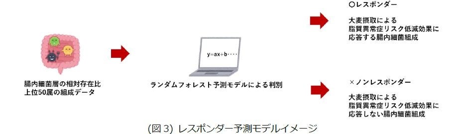構築したレスポンダー予測モデルは、脂質異常症に対する大麦の効果の有無を腸内細菌の組成から事前に予測し、パーソナライズされた食事指導戦略を立てるなど新しい栄養指導方法として将来的につなげていくことが今後期待できます。