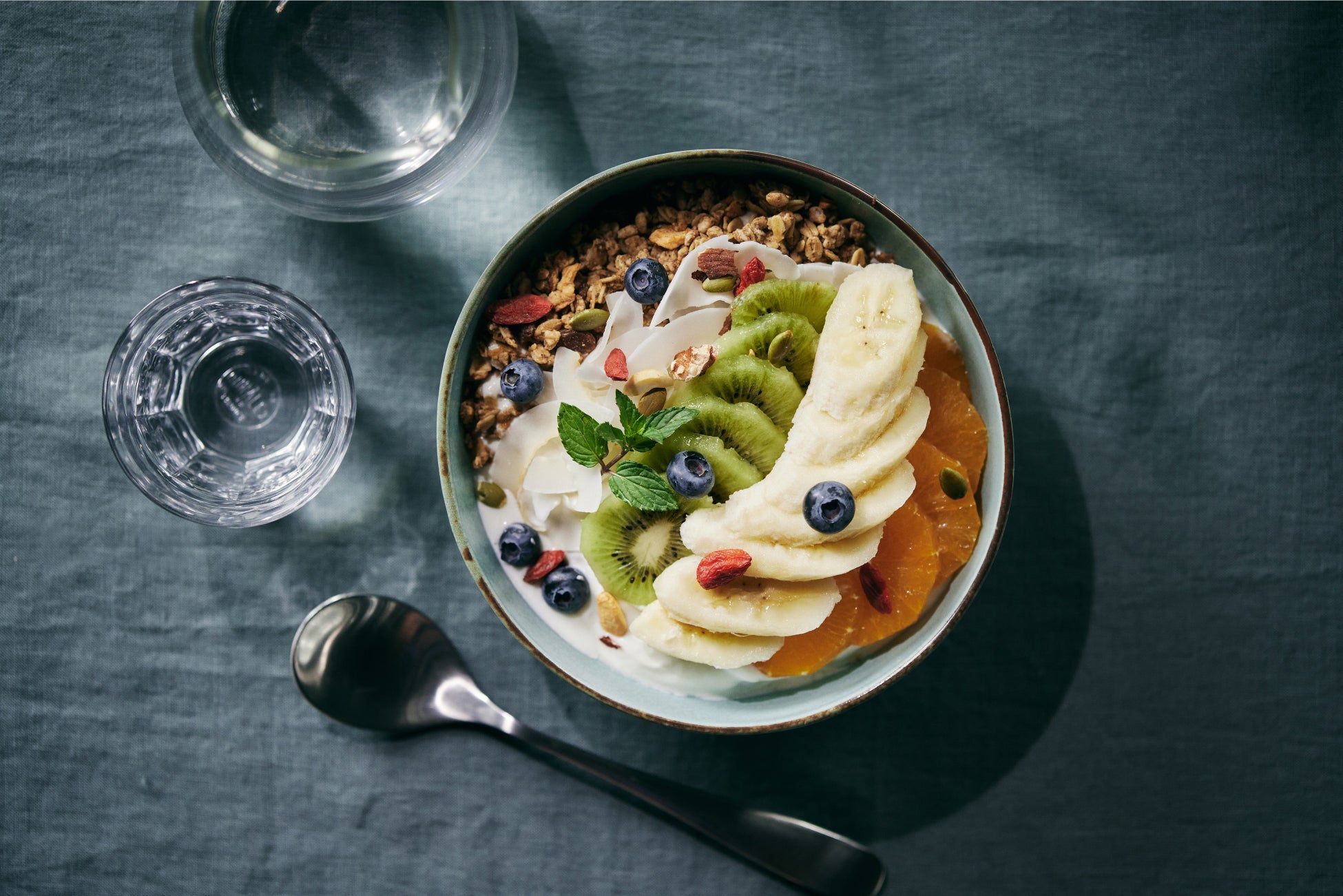 季節のフルーツをふんだんに使用したグラノーラボウルです。3種の植物性ミルク(豆乳、ブラウンライスミルク、オーツミルク)をご用意しております。自分好みの一皿をお楽しみください。提供時間:8:00~15:00