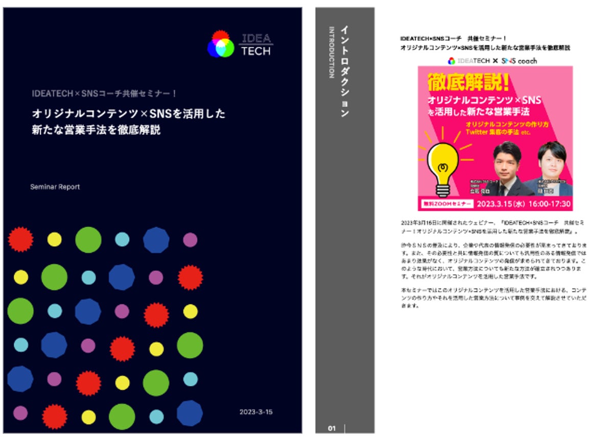 - オリジナルコンテンツ×SNSを活用した新たな営業手法についての全容レポートはこちらからご覧いただけます:https://ideatech.jp/download/057/?utm_source=pr_230410