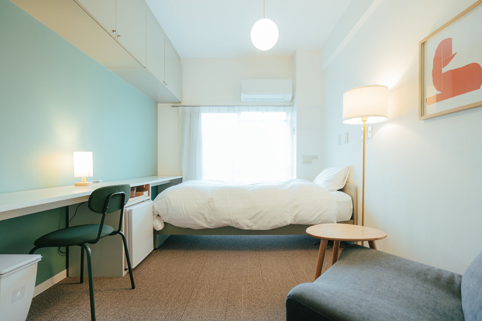 従来のレジデンスのホテルライクな仕様はそのまま、緑のアクセントカラーで仕上げました。