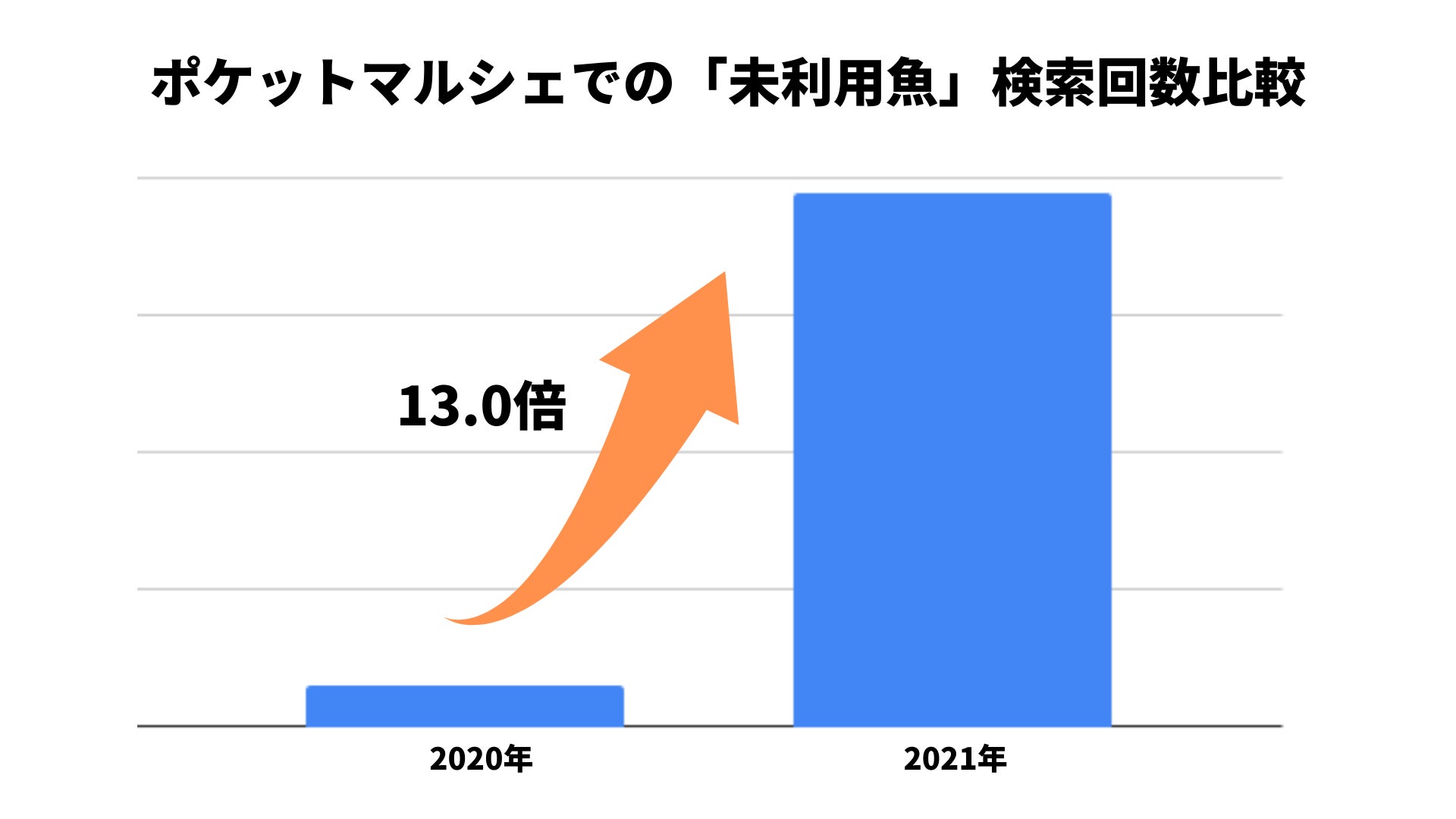 未利用魚とは、数量やサイズが揃わない、傷がついている、マイナーな魚種であるといった理由で、価値がつかず市場に出回らない魚のことです。ポケットマルシェ内における「未利用魚」を含むキーワードの検索回数は、2016年のサービス開始以降、2021年が過去最高となり、前年比13.0倍でした。また、ポケットマルシェ内で「未利用魚」として出品されている商品の売り上げも2021年が過去最高で、前年比24.1倍となりました。(※)