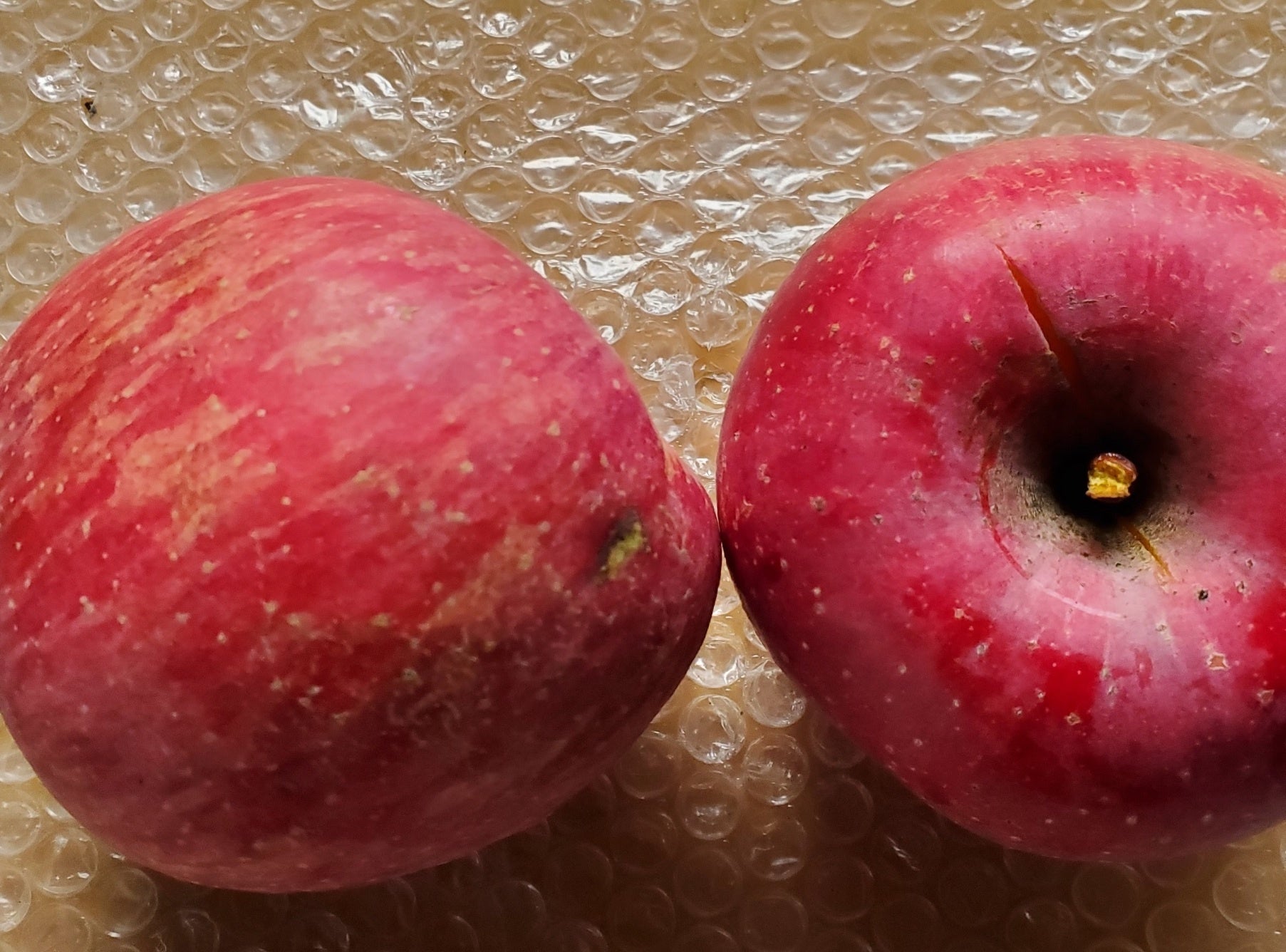 今年は春先の霜害で初期生育不足により、通常の年よりもサビ果など外観が悪いりんごが多い傾向にあります。味に違いはないので自宅用におすすめです。