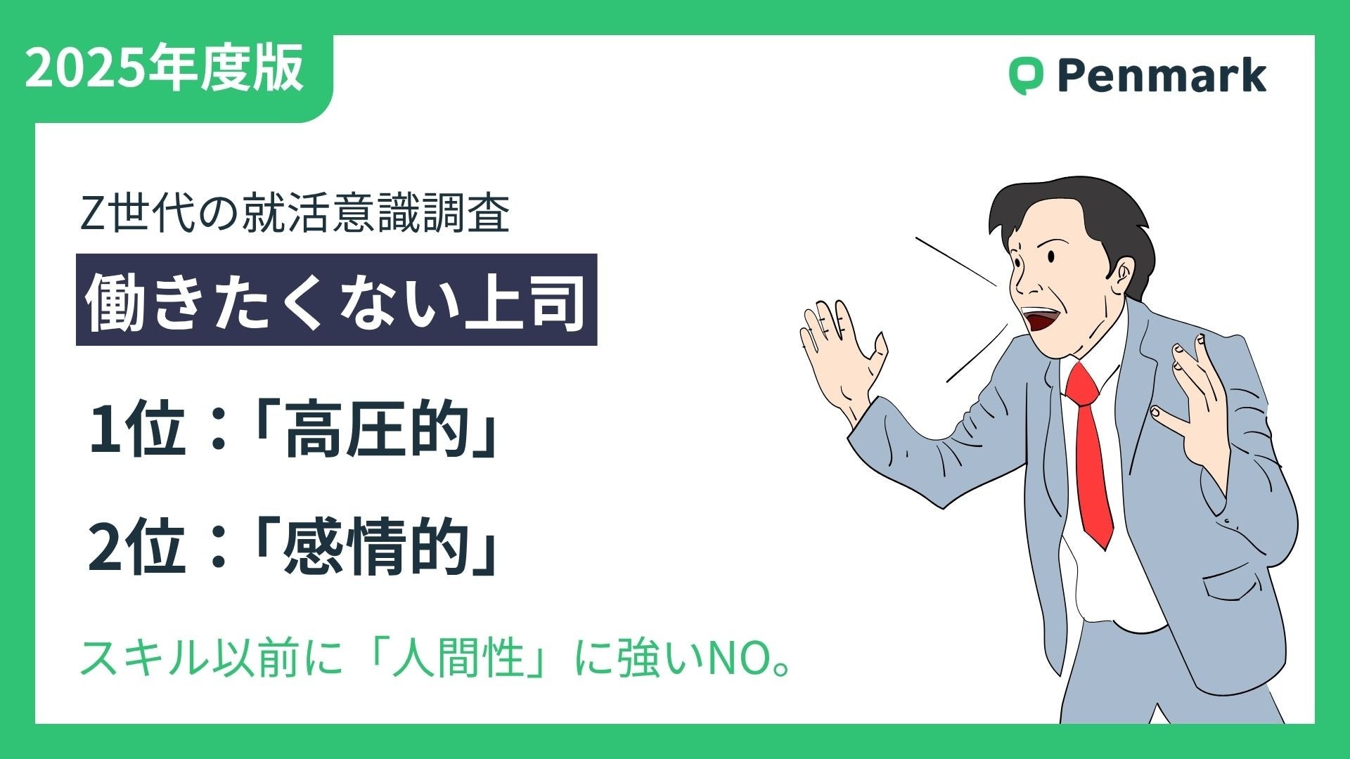 株式会社ペンマーク(本社:東京都目黒区、代表取締役:横山直明、以下ペンマーク)は、全国のZ世代の若手社会人を対象に、Z世代の就業意識調査の一環として「『この人の下では働きたくない』と感じる上司の特徴」に関するアンケート調査を実施しました。