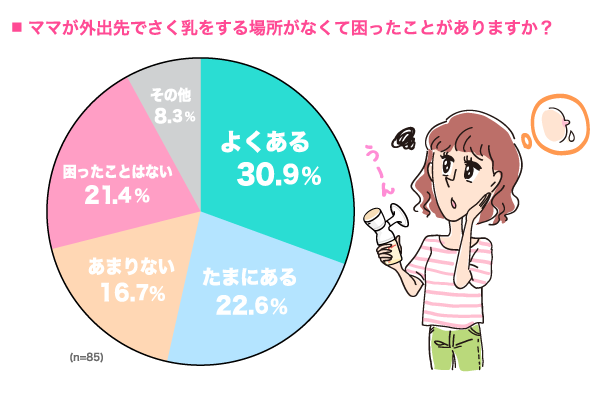 ※2 2022年6月実施:「外出時の授乳・さく乳」に関するアンケート調査。対象者:生後0〜17ヵ月のお子さまをお持ちのママとパパのうち「ママがさく乳をしている」と回答した方。有効回答数:85