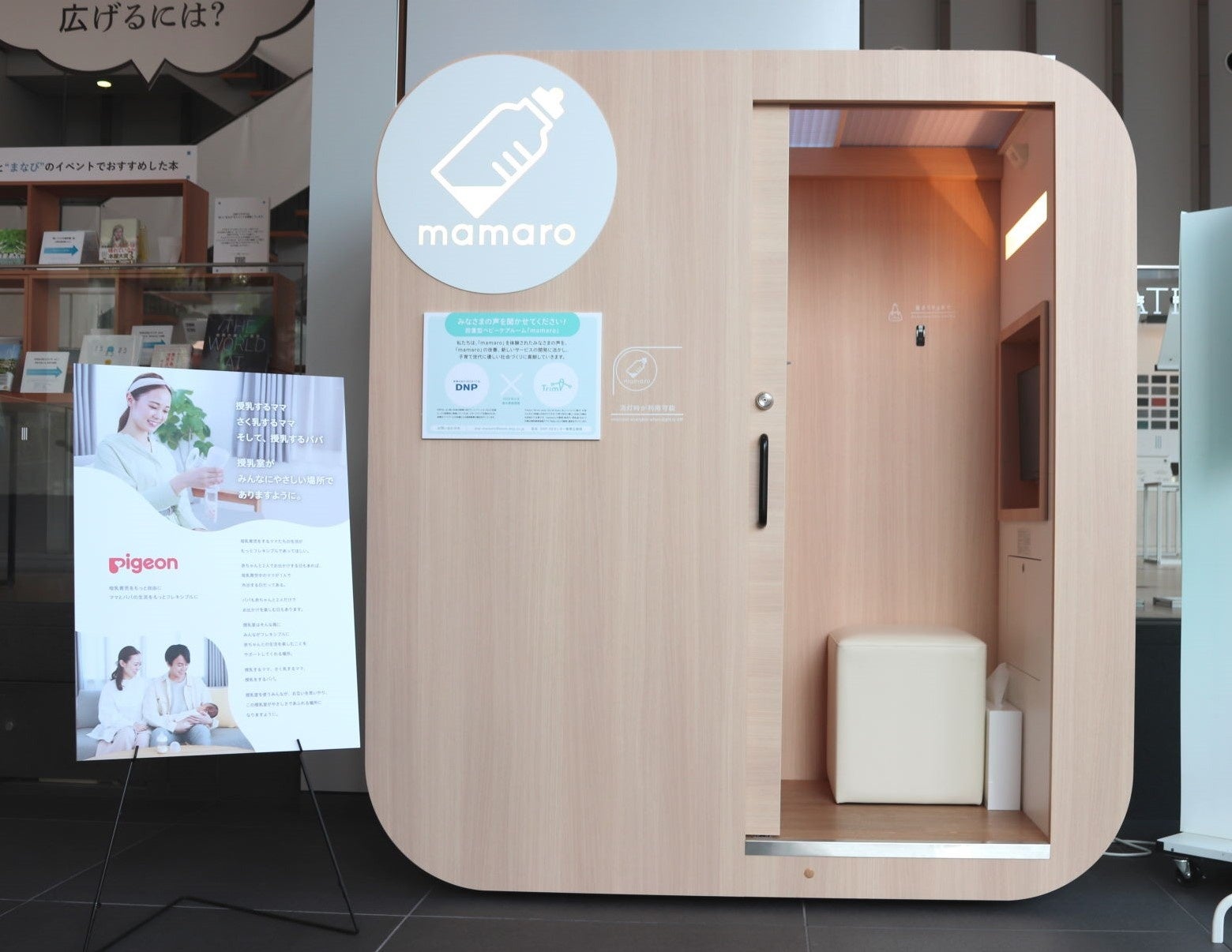 ピジョン株式会社(本社:東京、社長:北澤 憲政)は、赤ちゃんだけではなく、子育てをするママとパパにとってもより良い社会を目指す第一歩として、2022年7月よりTrim株式会社(横浜市中区、代表取締役社長:長谷川裕介/以下Trim)が提供する設置型ベビーケアルーム「mamaro™」(ママロ)と、外出時の授乳やさく乳のよりよい環境づくりをする新たな試みを、大日本印刷株式会社(DNP)が運営するオープンイノベーション施設「DNPプラザ」内にてスタートさせました。今後、この考えに賛同する「mamaro™」設置の施設にて、同様の試みを展開していく予定です。