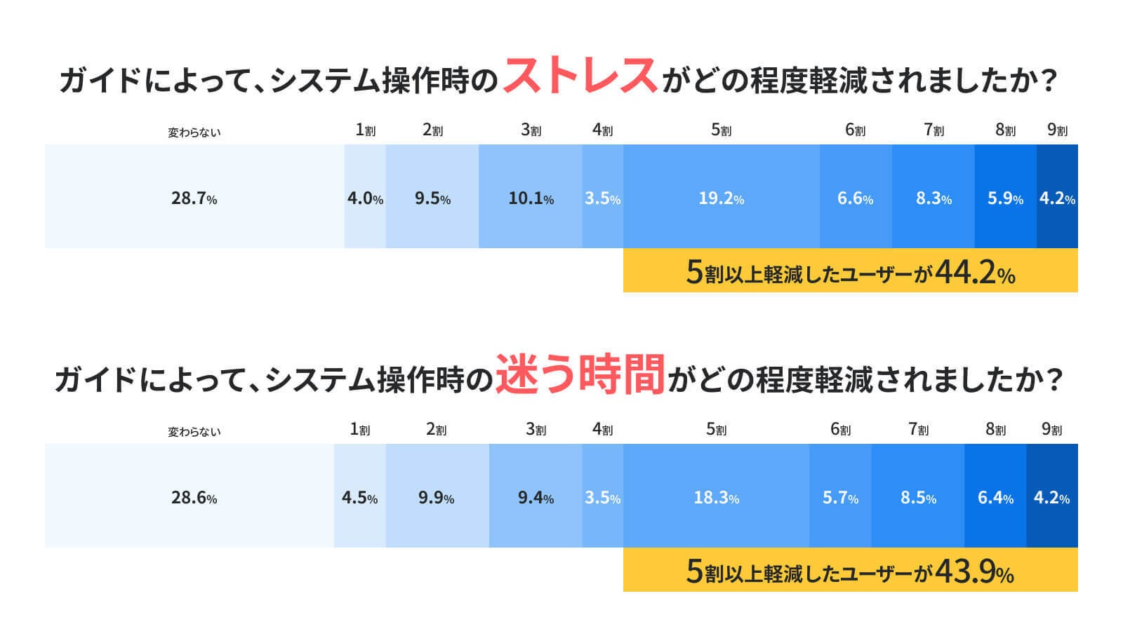 導入開始後、システムを利用する従業員の内、2,777名を対象にアンケートを実施したところ、下記結果となり、ユーザーのストレス/迷い軽減に一定の効果があることを確認出来ました。