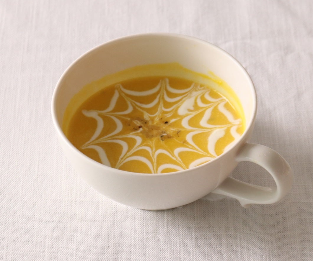 泡立てた生クリームでクモの巣を描けば、ハロウィン気分が広がります。